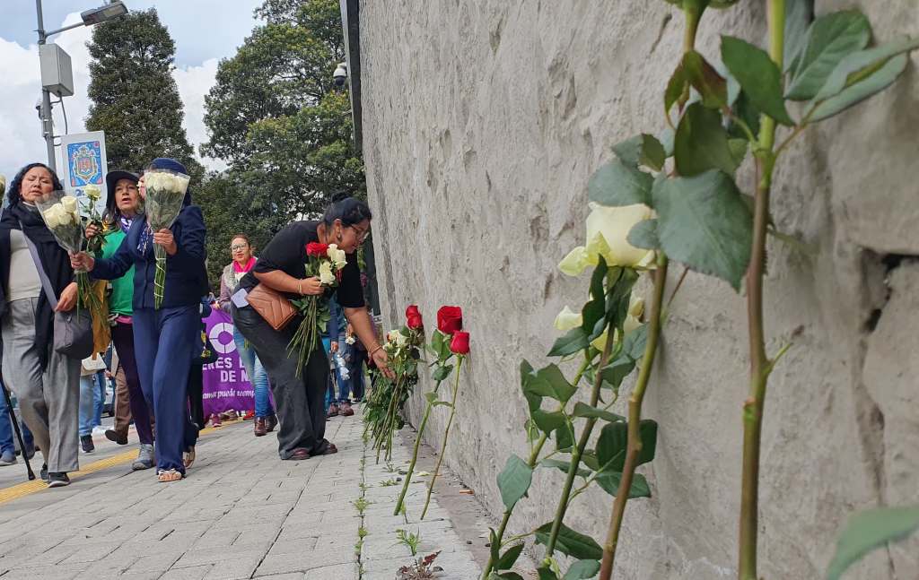 “Por nuestros niños, hasta la vida” fue la consigna de un grupo de manifestantes en la Plaza de la Memoria, en el norte de Quito, donde se congregaron con flores blancas y pancartas.