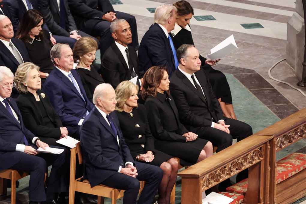 El cuerpo del fallecido mandatario, en un féretro cubierto por la bandera de Estados Unidos, fueron velados desde el martes en la Rotonda del Capitolio, recibió el respeto de la vicepresidenta Kamala Harris, miembros del Congreso, Trump y otros funcionarios.