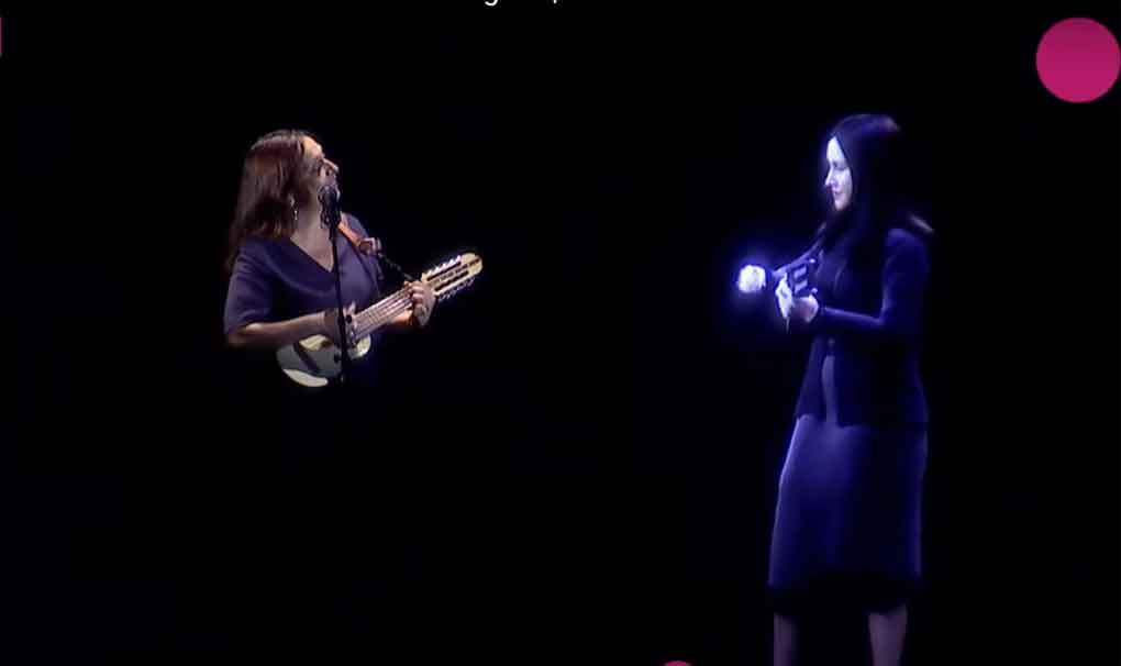Poco antes, se presentó el espectáculo Una canción en dos tiempos, donde gracias a la tecnología moderna se unieron las voces de una nieta y una abuela que no llegaron a conocerse, Violeta y Javiera Parra.