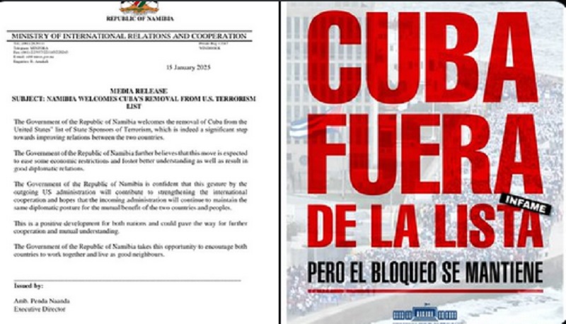 El gobierno de Estados Unidos anunció el 14 de enero la eliminación de Cuba de la lista del Departamento de Estado de países que supuestamente patrocinan el terrorismo, que a pesar de su alcance limitado, es una decisión que apunta en la dirección correcta, indicó la declaración de ZICUFA.