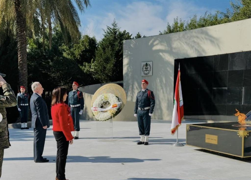 Como parte de una gira a la nación levantina, Robles rindió homenaje en la sede del Ministerio de Defensa libanés a los soldados caídos en defensa de la paz y los valores democráticos.