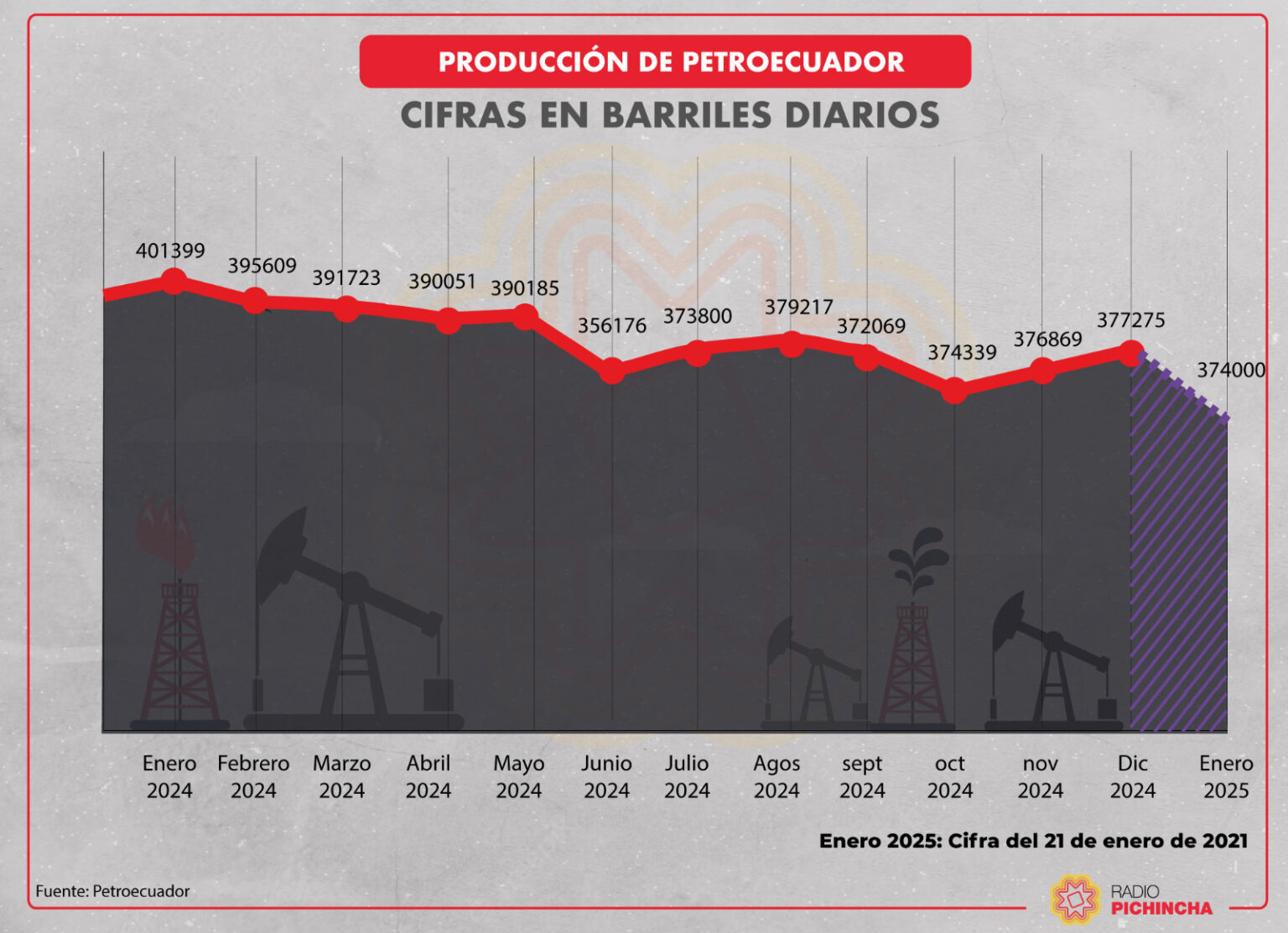 Petroecuador es la responsable del 80 por ciento de la producción nacional de hidrocarburos y esos datos indican que en 2024 se dejaron de explotar 1,87 millones de barriles, precisó un análisis divulgado en el sitio web de la emisora Radio Pichincha.