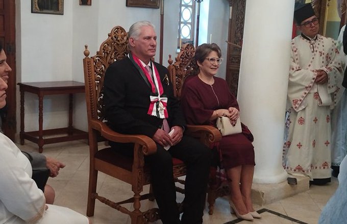 En la Sacra Catedral Ortodoxa Griega San Nicolás de Myra, consagrada hace dos décadas en el Centro Histórico Habanero, el mandatario cubano fue recibido por el representante del patriarcado ecuménico de visita en la isla, el arzobispo de Australia, Monseñor Makarios.