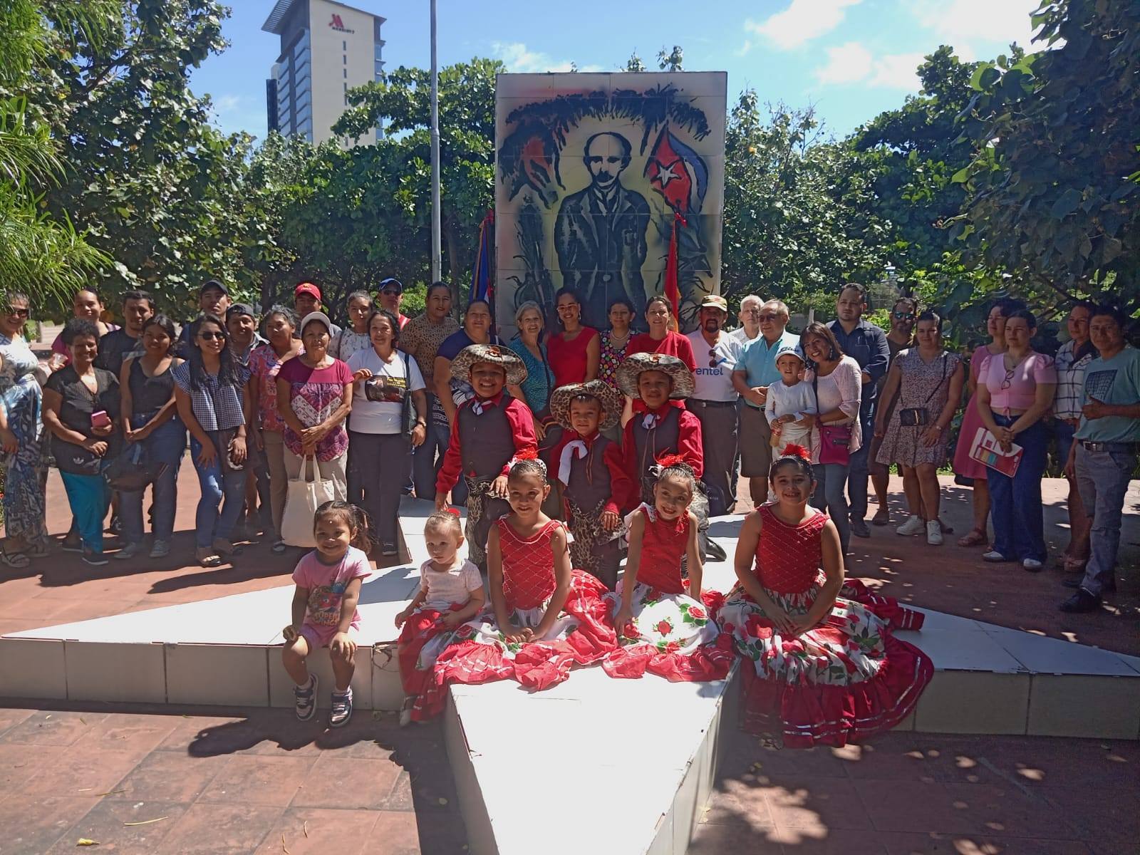 Rosas blancas para “el amigo sincero” fueron depositadas por los más pequeños ante un mural con la imagen del autor de la Edad de Oro (28 de enero de 1853-19 de mayo de 1895), que preside este espacio público cruceño.