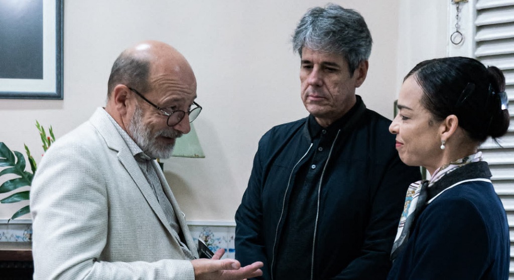 La directora general del BNC y primera bailarina, Viengsay Valdés, junto al historiador de la compañía Miguel Cabrera recibieron a los guías de las puertas abiertas y a varias personalidades.