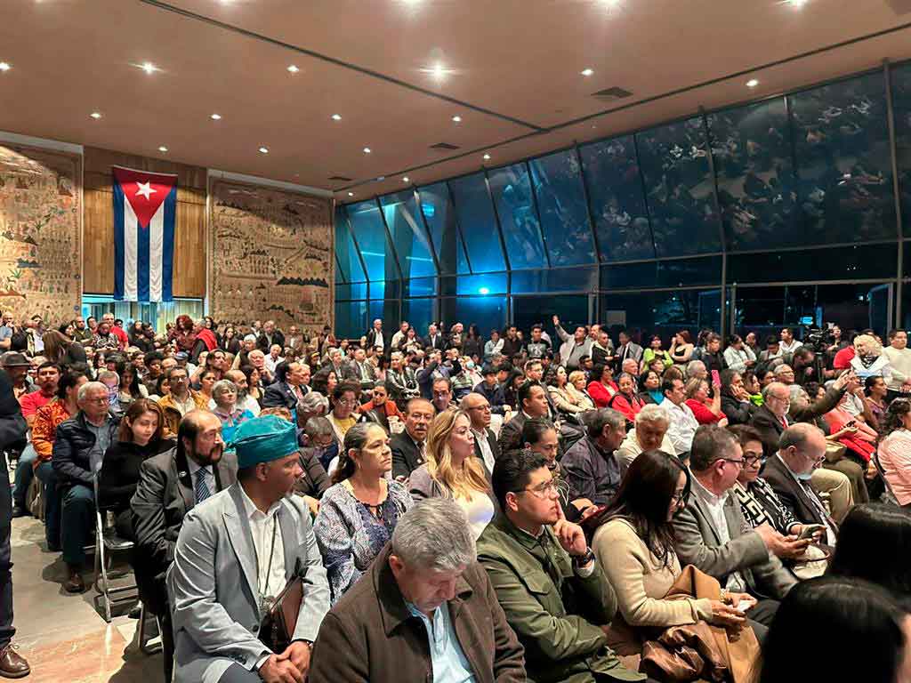 A la actividad asistieron, además, embajadores de naciones como Venezuela, Bolivia y Brasil; Carolina Rangel, secretaria general del Movimiento de Regeneración Nacional; senadores y diputados, así como miembros del Movimiento Mexicano de Solidaridad con Cuba.