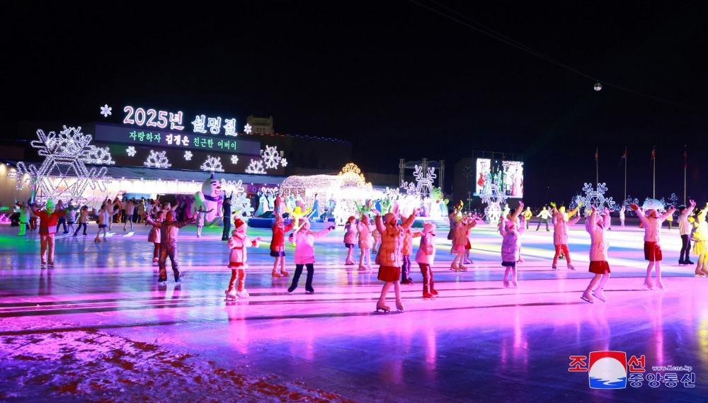 Una de los sitios más concurridos fue el Centro de Patinaje al Aire Libre de Pyongyang, en cuya pista de hielo se ofrecieron variadas piezas inspiradas en canciones famosas sobre el amor a la patria, la dignidad y el optimismo del pueblo coreano.