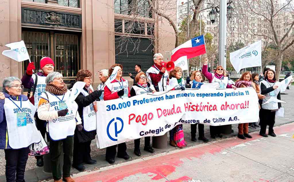 Mientras, el presidente del Colegio de Profesores, Mario Aguilar, reconoció el esfuerzo del grupo de educadores que durante muchos años asistió todos los jueves al Palacio de La Moneda, sede de la presidencia, para exigir el pago de la deuda.