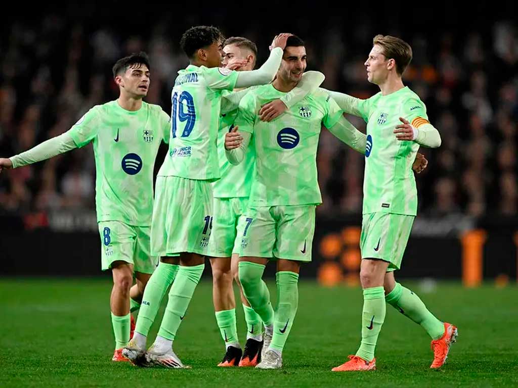 Un triplete de Ferran Torres en los minutos tres, 17 y 30, y tantos de Fermín López (23) y Lamine Yamal (59) sepultaron cualquier ilusión del conjunto Che en el Mestalla.