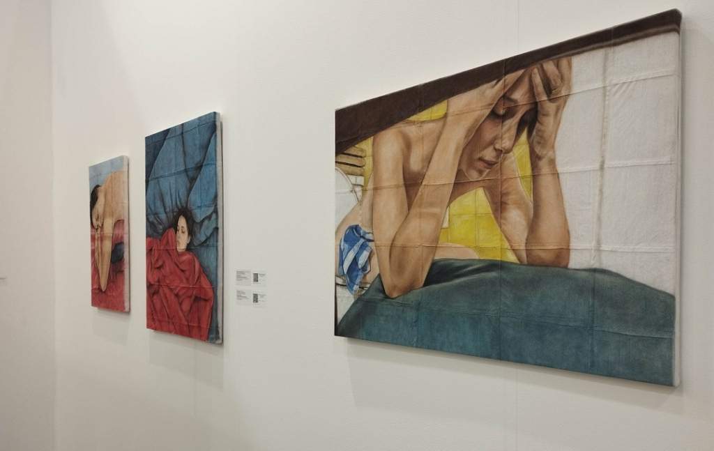 La curadora arroja más luz sobre la obra de la artista: “Lo interesante es eso, que son momentos en los que la mujer no se ha maquillado o ya se quitó el maquillaje. Es como mostrar esas escenas ocultas a partir de una técnica que es para el exterior”.