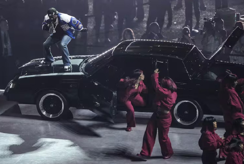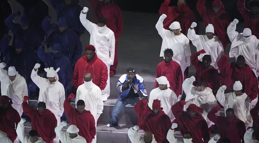 Durante su set de 13 minutos, Lamar interpretó las canciones de su álbum de 2024 GNX, entre ellas Luther y All the Stars junto a SZA y Not Like Us.