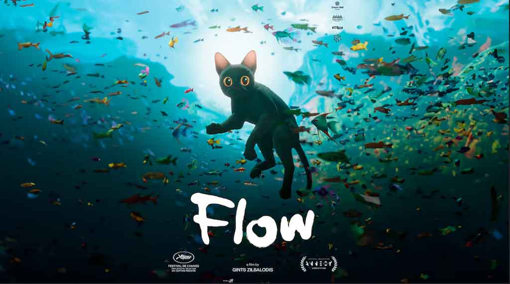 Dirigida por Gints Zilbalodis, Flow, un mundo que salvar, conquistó el apartado de Mejor filme de animación en la edición 82 de los Globos de Oro, en tanto está nominada a los 97 Premios Oscar en las categorías de Mejor película internacional y Mejor largometraje de animación.