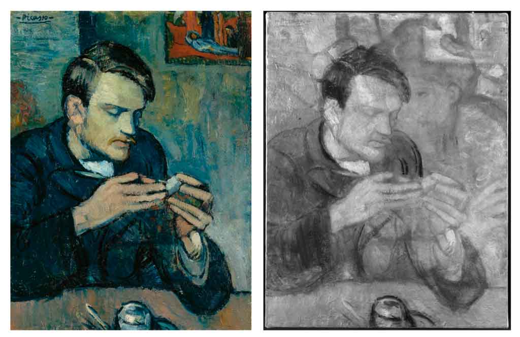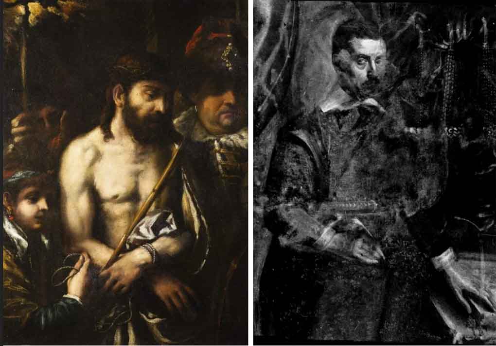 Tiziano volteó el lienzo cuando comenzó Ecce Homo, colocándolo boca abajo en el Retrato de un hombre desconocido, y pintó directamente sobre el original.