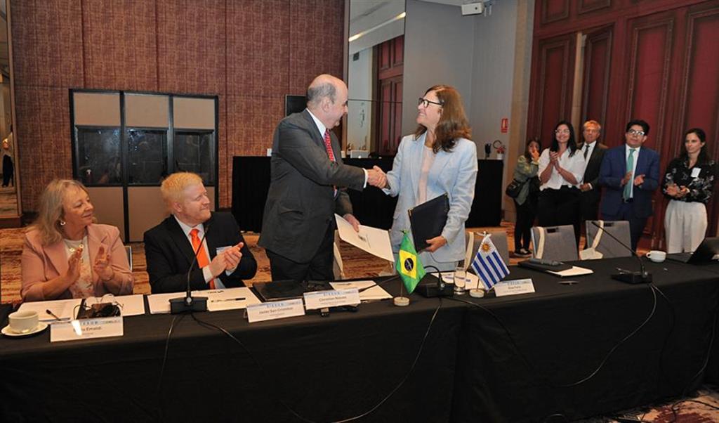 De la rúbrica del convenio participaron la titular del Ministerio de Industria, Energía y Minería, Elisa Facio, el embajador de la República Federativa de Brasil en Uruguay, Marcos Repaso López, la presidenta de la Administración Nacional de Usinas y Trasmisiones Eléctricas (UTE), Silvia Emaldi, y el director nacional de Energía, Christian Nieves.