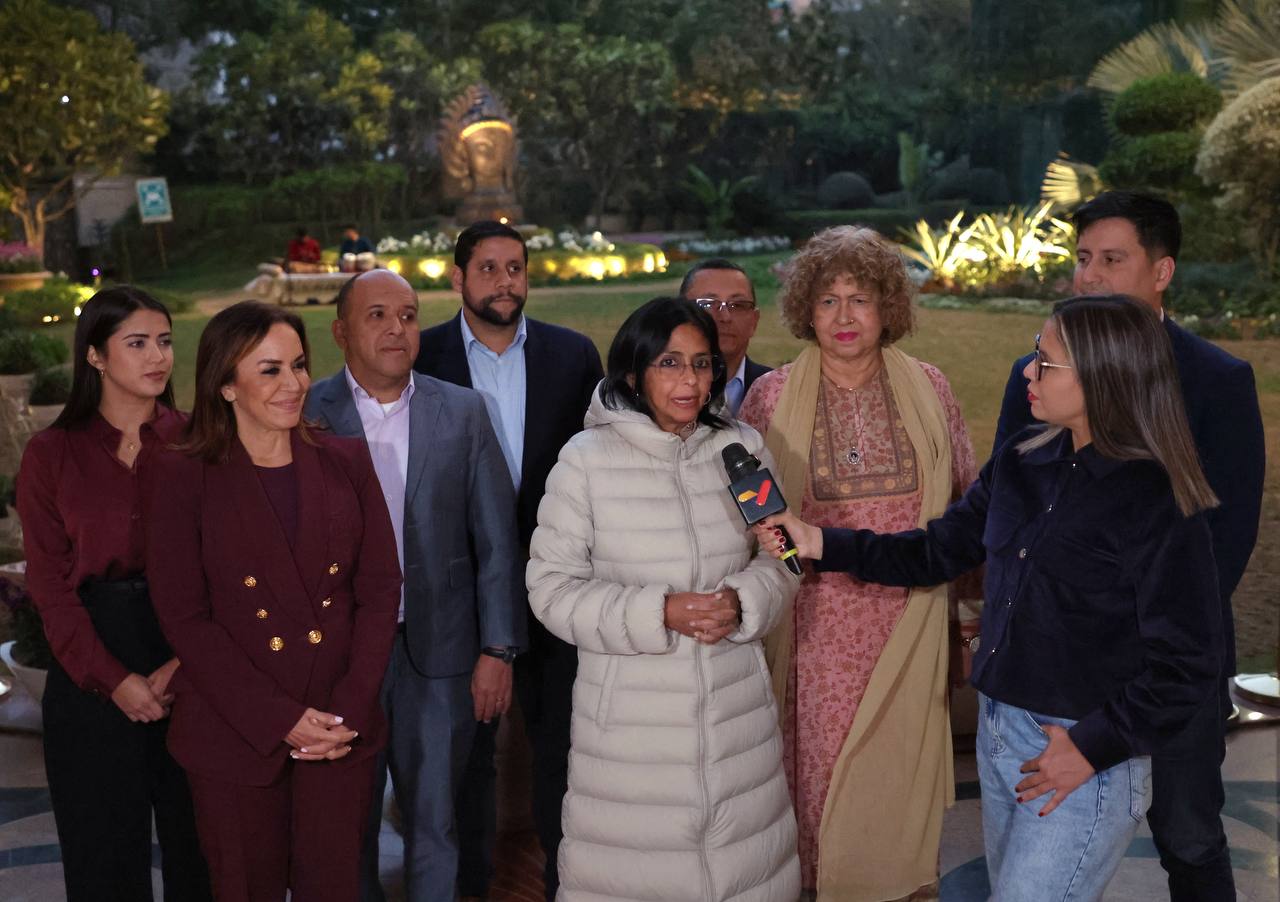 Como parte de la agenda, la vicemandataria, en compañía de la ministra de Comercio Exterior Coromoto Godoy y la presidenta de la Agencia de Promoción de Exportaciones Daniela Cabello le entregaron al ministro de Comercio e Industria de la India, Piyush Goyal, la oferta exportable de Venezuela.