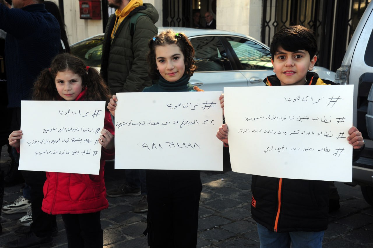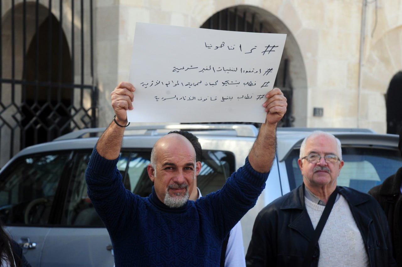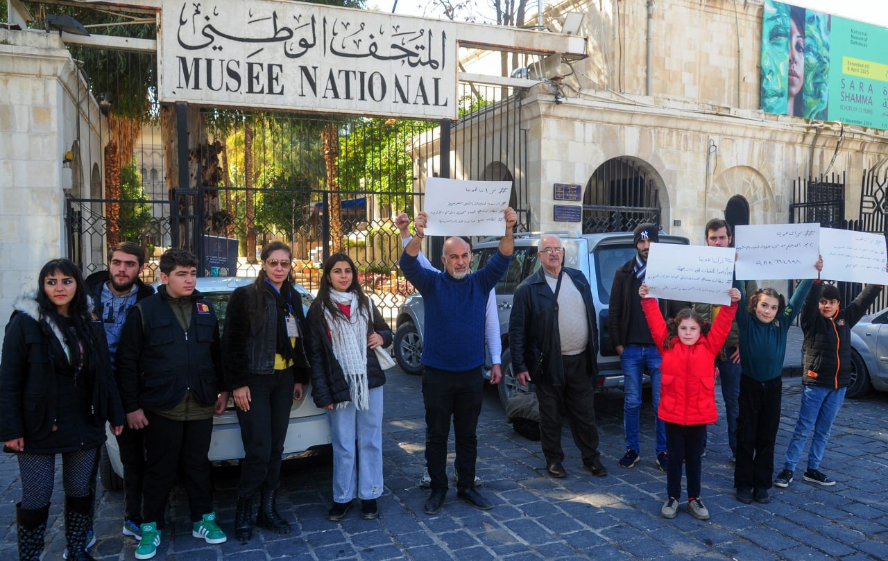 Los participantes en el acto portaron carteles con frases que piden la protección de las antigüedades sirias de las excavaciones ilegales, y preservar la identidad cultural nacional ante las crecientes amenazas que enfrenta su rico patrimonio debido a estas prácticas ilegales.