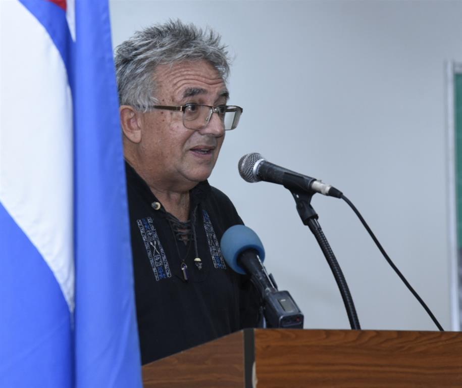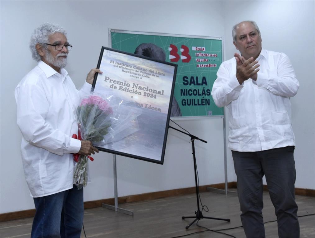 Al recoger el lauro de manos del ministro de Cultura de Cuba, Alpidio Alonso, el poeta y editor comenzó su discurso de aceptación con un homenaje a su colega escritor Francisco López Sacha, fallecido este domingo a la edad de 74 años y a quien se le dedicó la feria del pasado año.