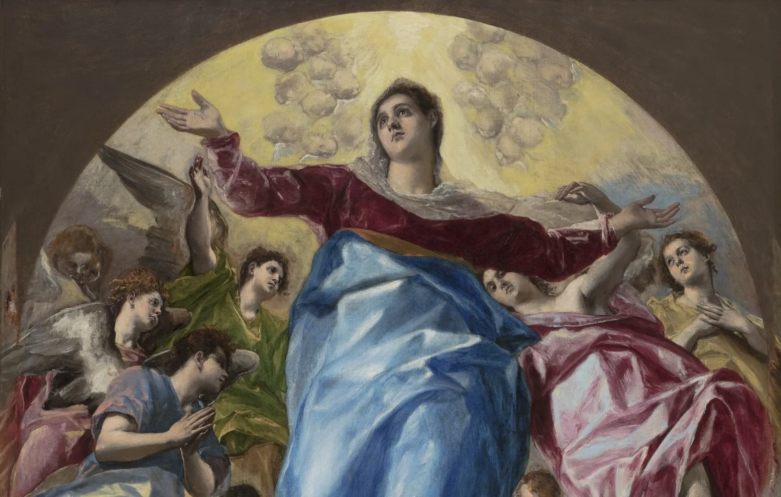 La Asunción, la gran tela central del retablo mayor, que desde 1906 forma parte de las colecciones del Art Institute de Chicago, se expone junto a las dos pinturas de este retablo conservadas en la colección del Prado.