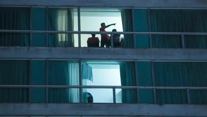 Algunos se asomaron la víspera por las ventanas desde habitaciones de pisos altos, cruzaban los brazos y mostraron carteles con mensajes en inglés, como “Help” (ayuda) , «We are not save in our country» (No estamos a salvo en nuestro país) y «Por favor ayúdennos”.