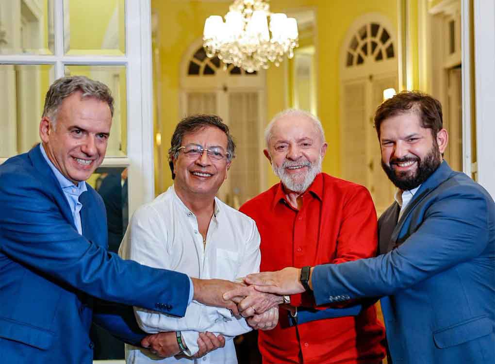 Petro también publicó una foto tomada durante una reunión con sus pares de Brasil, Luiz Inácio Lula da Silva, de Chile, Gabriel Boric, así como con el mandatario de Uruguay, Yamandú Orsi.