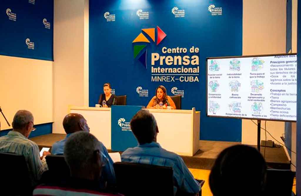 Se trata de la proscripción del latifundio, el arrendamiento y la aparcería de tierra, que también es un precepto de la Constitución cubana”, dijo en el Salón de Conferencias del Centro de Prensa Internacional la Máster en Derecho Agrario.