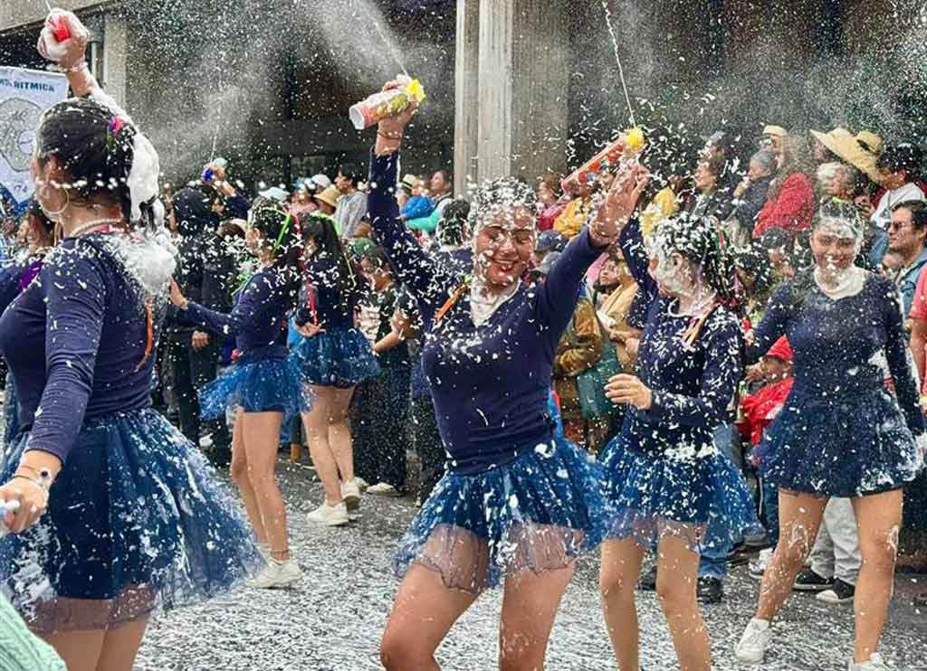 A pesar de la lluvia de estos días, que ha dejado más de 73 mil afectados a nivel nacional, parques y espacios públicos permanecen llenos de personas que “juegan” el carnaval con agua, espuma, harina, tintes de anilina, y hasta huevos, una forma muy particular de carnavalear en estas tierras andinas.
