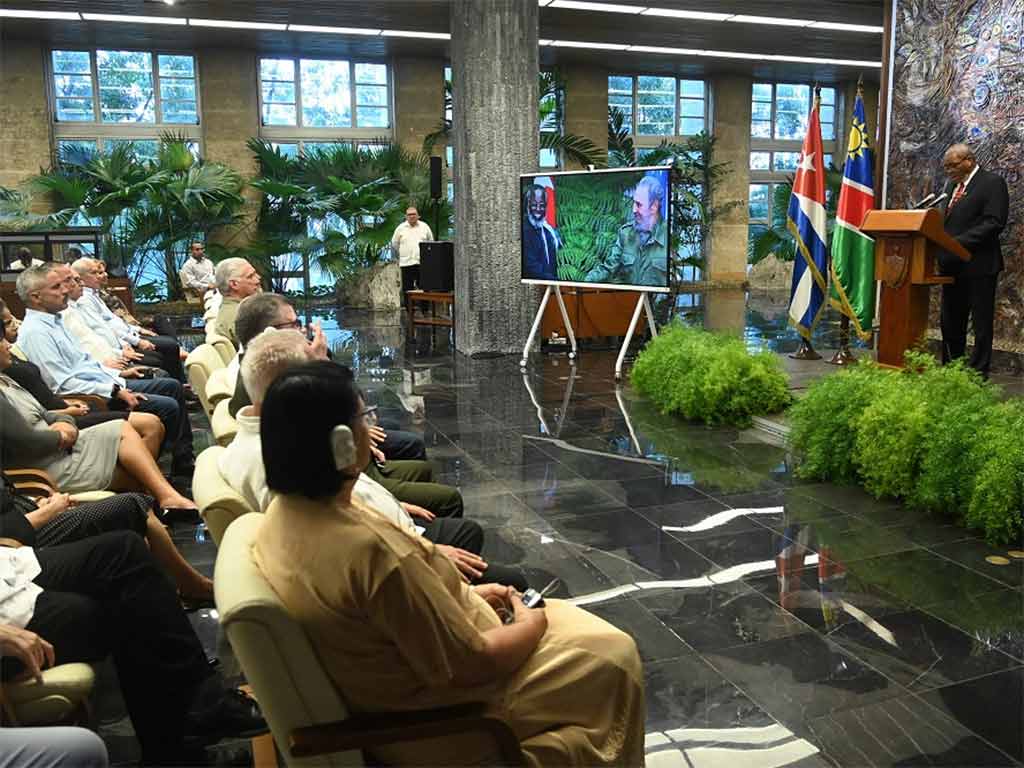 En el homenaje al Padre Fundador de la independencia de ese país africano, estaban presentes también el embajador namibio, Samuel Goagoseb, el primer ministro cubano, Manuel Marrero, el vicepresidente Salvador Valdés, el canciller Bruno Rodríguez y representantes del Cuerpo Diplomático.