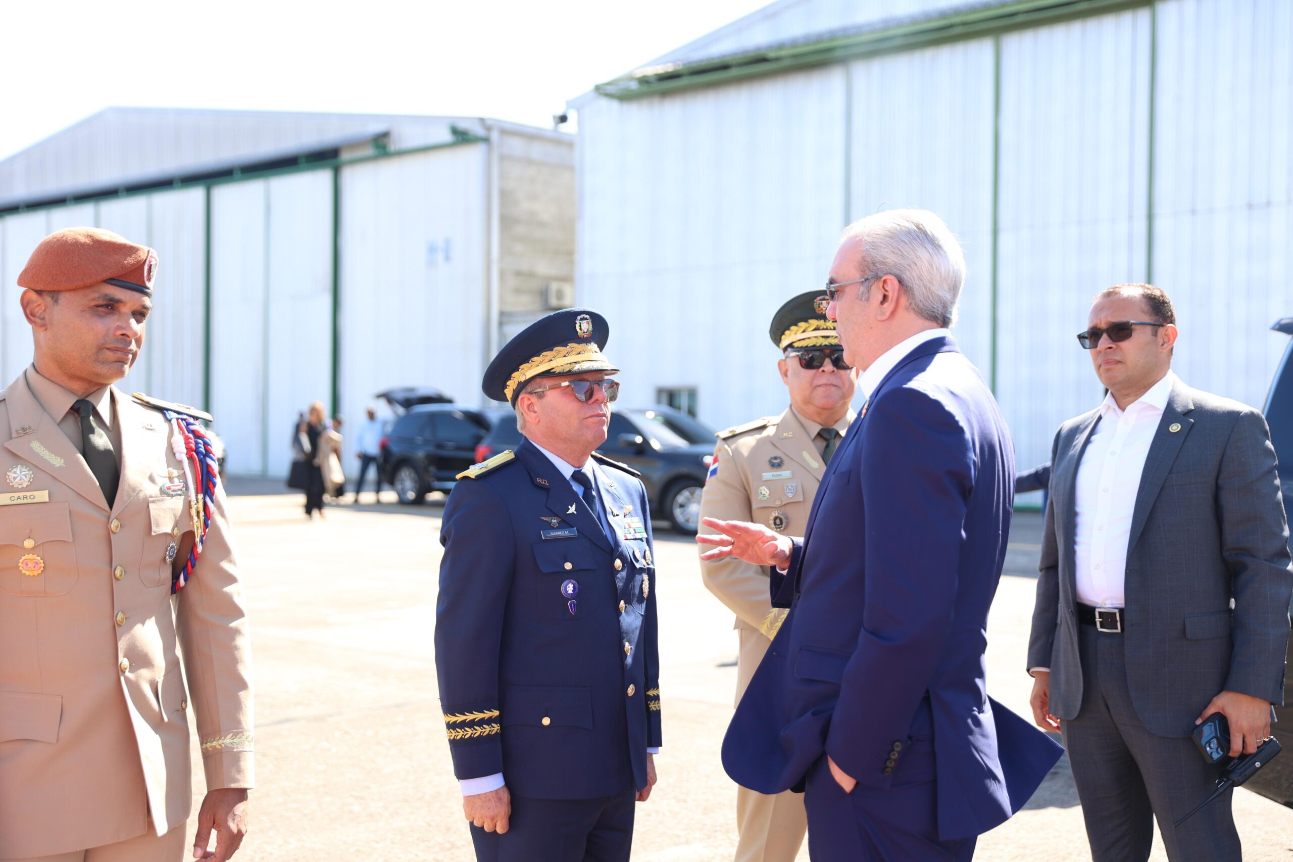 Acompañan al jefe de Estado el ministro de Industria y Comercio, Víctor Bisonó; sus asistentes, Eilyn Beltran, director del Gabinete Presidencial, y Mercedes Pichardo; el jefe de la seguridad del presidente, Jimmy Arias, así como varios empresarios dominicanos.