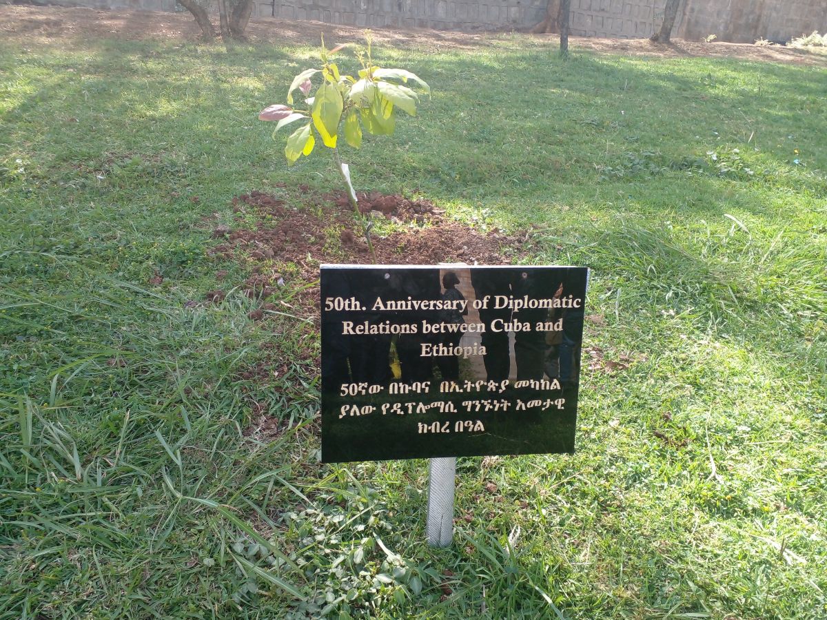 A propósito de los 50 años de las relaciones diplomáticas, Rodríguez Parrilla junto con el subdirector de Europa y América de la Cancillería local y actual director interino, Abraham Megistu, sembraron una plántula de árbol para conmemorar la efeméride prevista el 18 de julio próximo.
