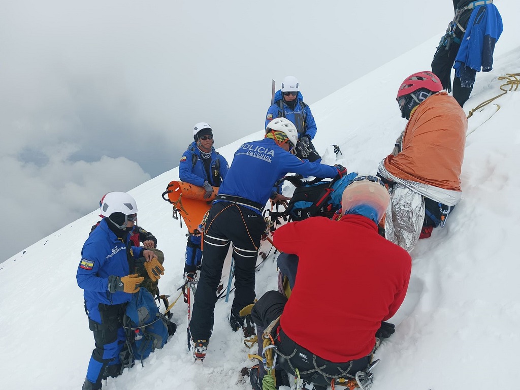 Unos 40 integrantes del Grupo de Operaciones Especiales (GOE), el Grupo de Intervención y Rescate (GIR), la Secretaría de Riesgos y bomberos de varios municipios acudieron a asistir a quienes quedaron inmovilizados a cinco mil 800 metros de altura, reportó el canal Ecuavisa.