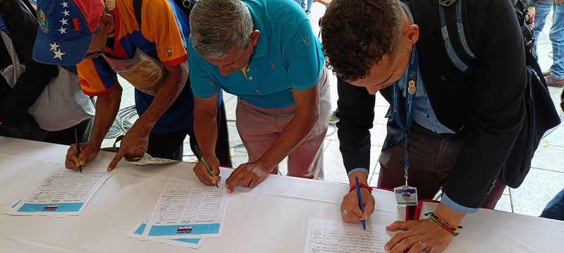 Imágenes transmitidas por Venezolana de Televisión desde todos los puntos del país y según pudo constatar Prensa Latina en Caracas, hombres y mujeres, trabajadores, jóvenes, abuelos, militares, acudieron a depositar su firma en solidaridad con sus compatriotas.