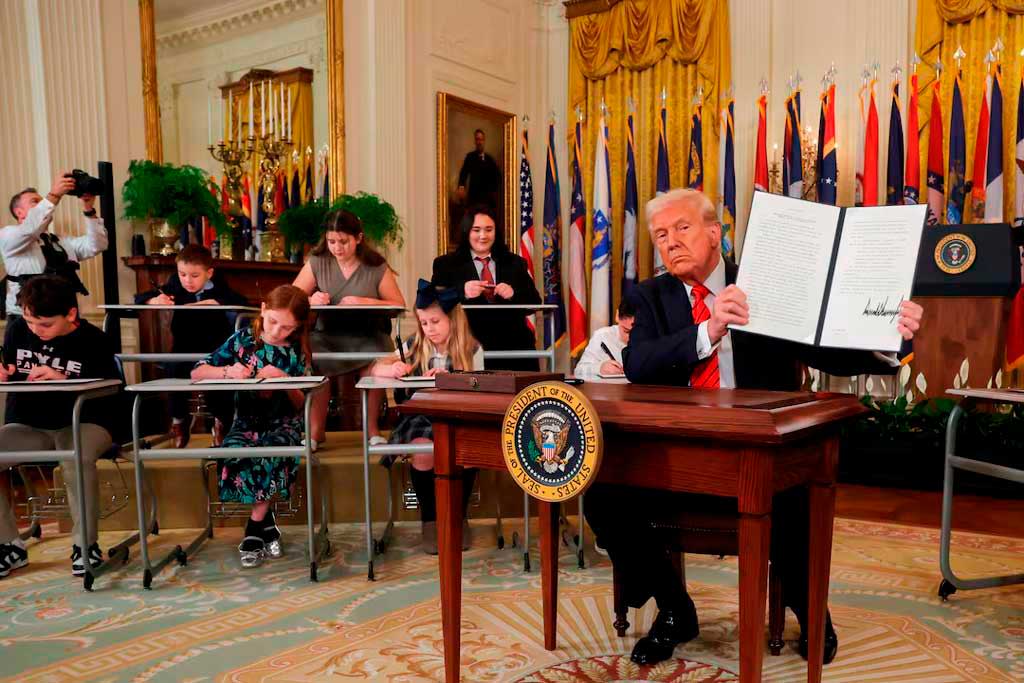 Rodeado de niños y adolescentes en lo que parecía imitar el aula de una escuela, Trump expresó la tarde de este jueves desde la Sala Este de la Casa Blanca que eliminaría el ED «y todos saben que es lo correcto».