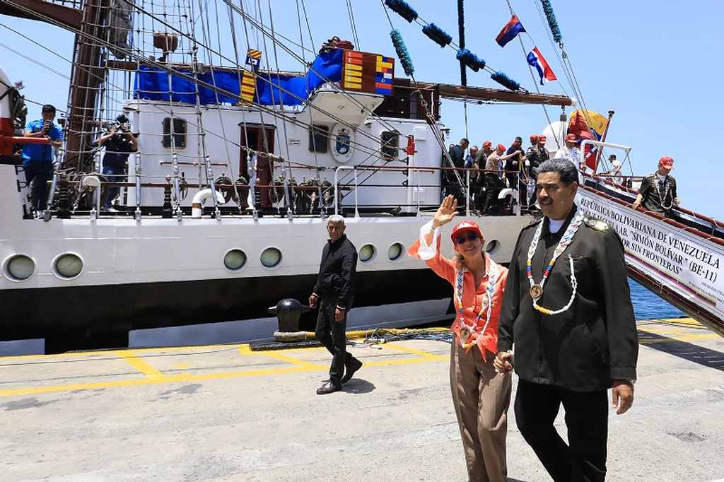 Desde el muelle 23 del puerto en el estado de La Guaira (norte), el mandatario en compañía de la primera combatiente y diputada Cilia Flores, el ministro para la Defensa, general en jefe Vladimir Padrino, familiares y otros altos mandos de la Armada y la Fuerza Armada Nacional Bolivariana, despidió a los 193 tripulantes.