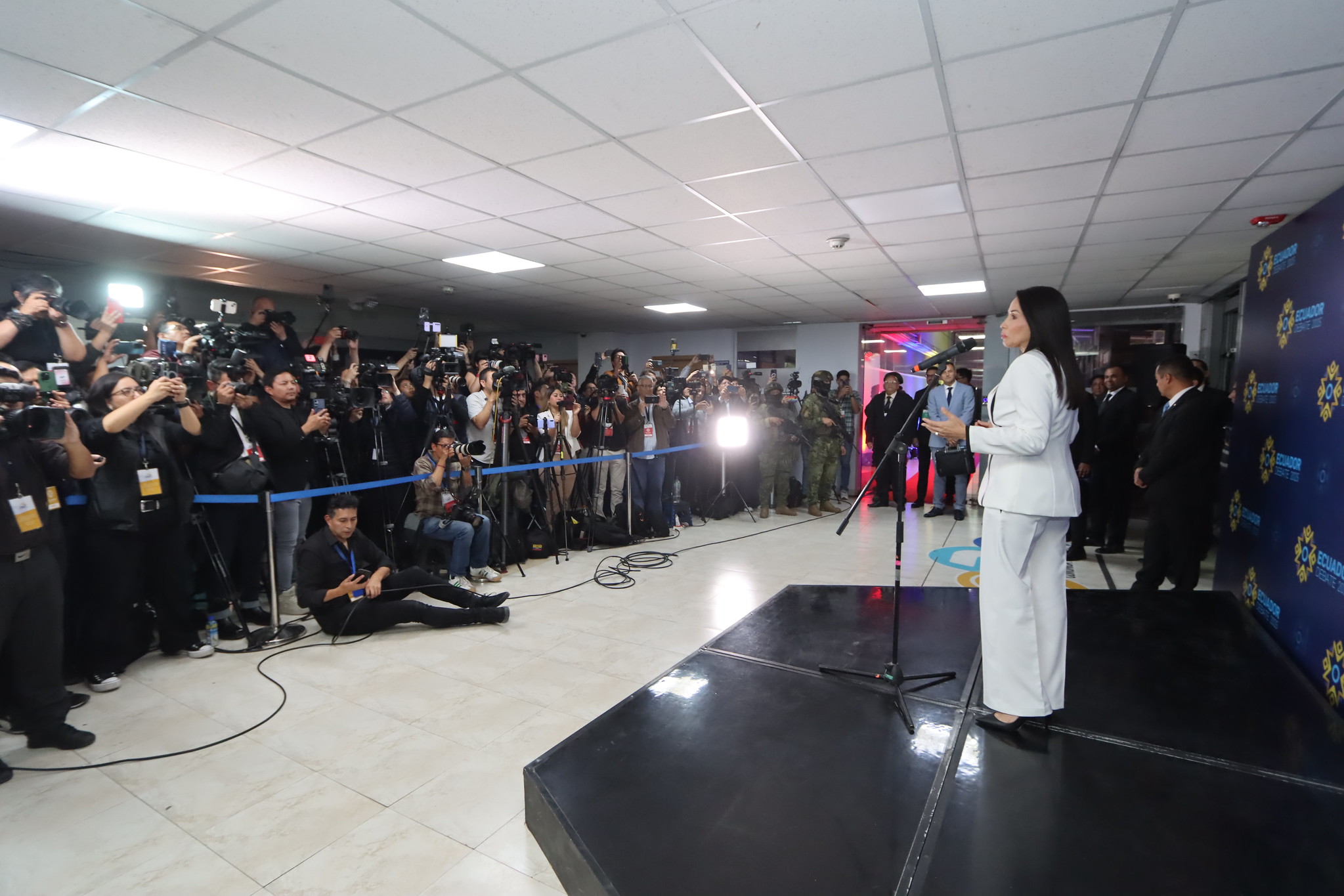 Inmediatamente, la representante de la RC manifestó que “tenemos una gran inquietud, ¿pidió o no licencia el candidato (Daniel) Noboa? ¿encargó o no la presidencia de la República a quien por Constitución y ley le corresponde, que la vicepresidenta electa en las urnas (Verónica), Abad?”.