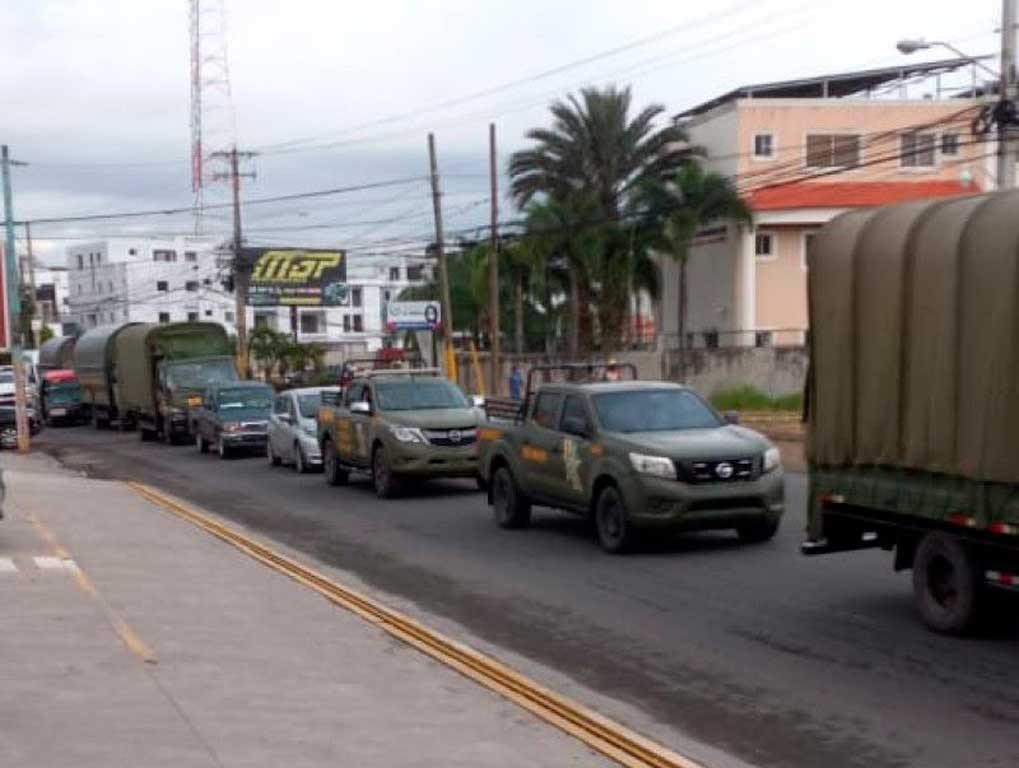 Videos que circulan en las redes sociales dejan ver helicópteros sobrevolando la capital de la provincia Duarte, en la región nordeste del país, y decenas de camiones en caravana identificados como “Ejército”.