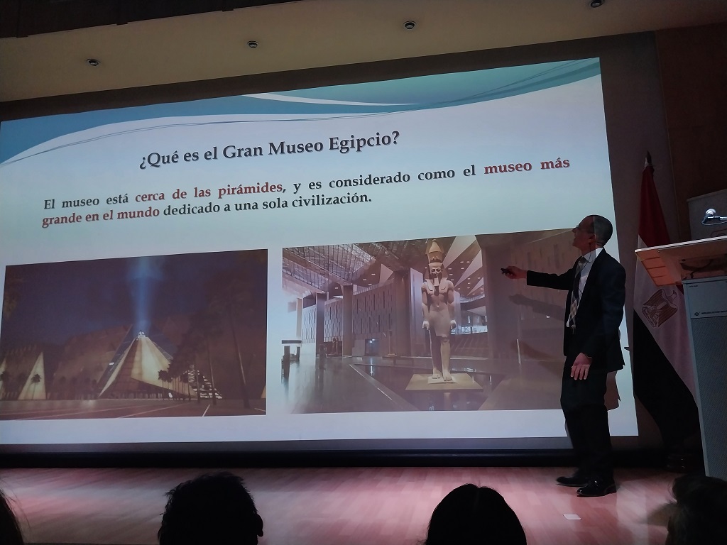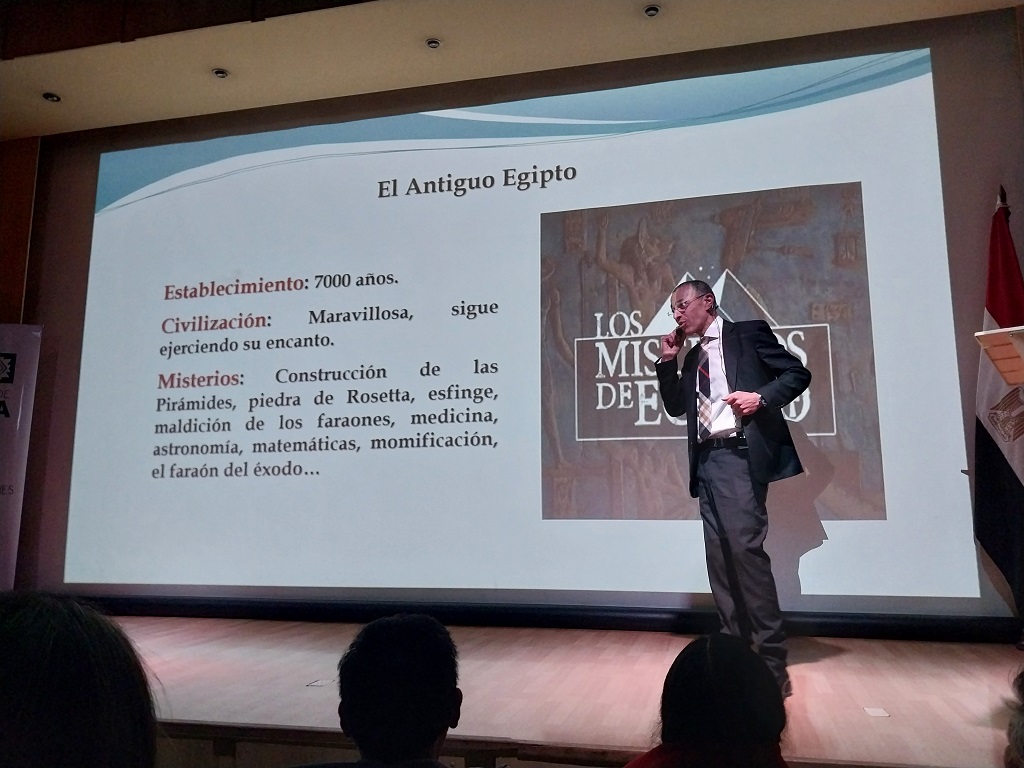 Sobre el programa, resaltó la relevancia de la conferencia a cargo del embajador Hatem Elnashar, con el tema Misterios del Antiguo Egipto, y posteriormente con la inauguración de la exposición de estatuas y cuadros faraónicos.