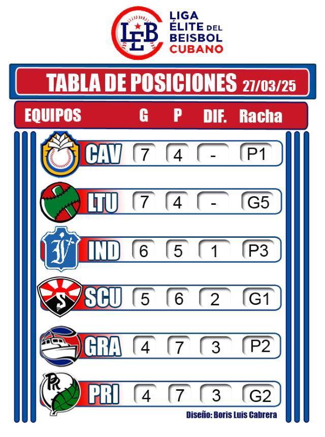 Después de estos resultados, la tabla de posiciones exhibe a Las Tunas y Ciego de Ávila en la cúspide (7-4), seguidos por Industriales (6-5), Santiago de Cuba (5-6) y Granma y Pinar del Río (4-7).