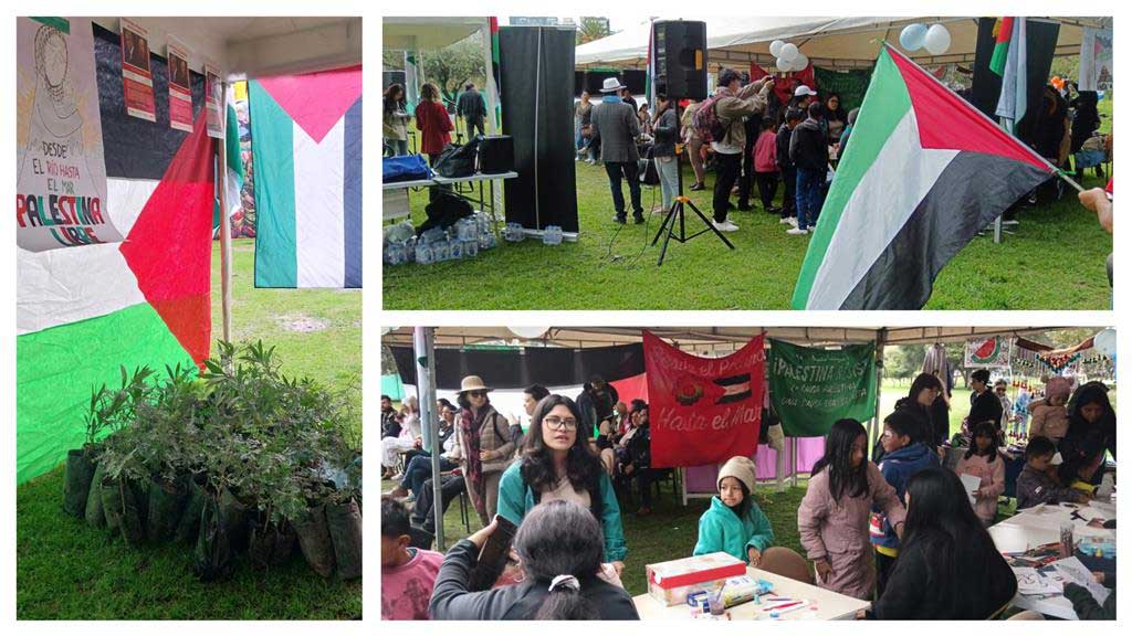 Música, artesanía, pintura y otras expresiones artísticas estuvieron presentes en el acto, donde Pablo de la Vega, del Centro de Documentación en Derechos Humanos Segundo Montes Mozo S.J., rechazó el silencio del gobierno ecuatoriano ante los crímenes del sionismo en la Palestina ocupada.