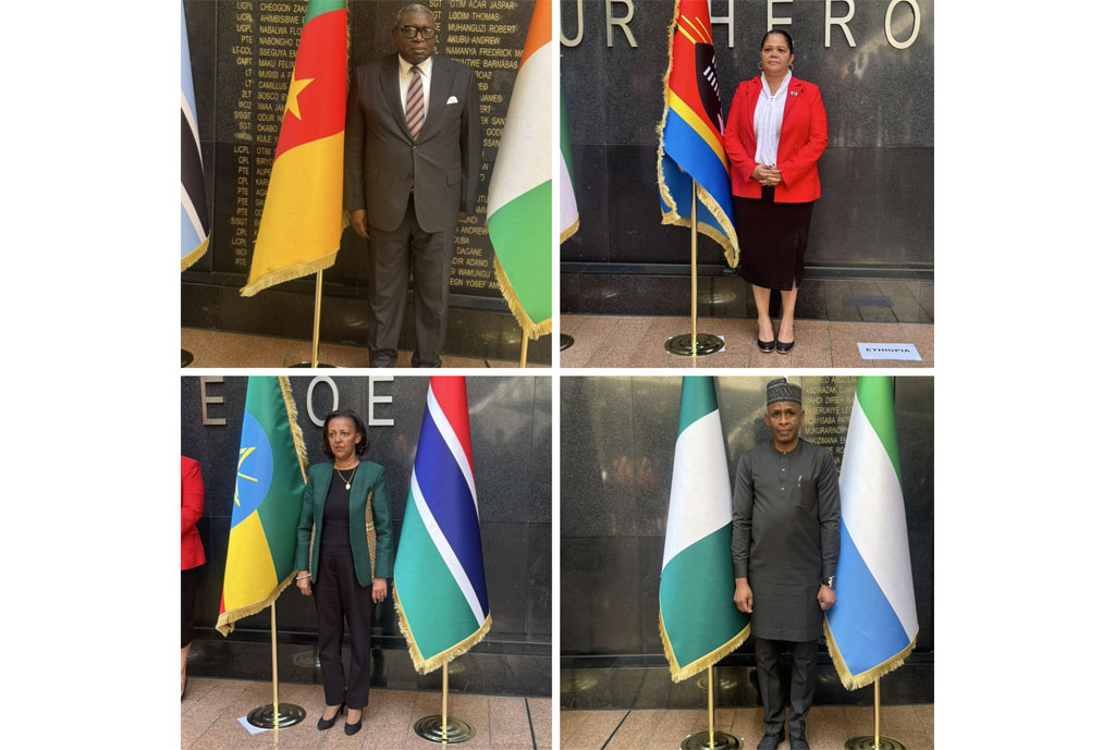 The #AUPSC held a Flag Ceremony to welcome incoming members of the Council who were elected to serve for a 3-year term at the #38thAUSummit: Cameroon 🇨🇲, Eswatini 🇸🇿, Ethiopia 🇪🇹 and Nigeria 🇳🇬 (pending the conclusion of the election for a northern Africa region representative). pic.twitter.com/KUXhV9BBH5