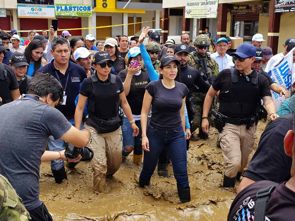 González, por su lado, con botas de caucho, caminó entre lodo y agua estancada en el cantón Santa Ana, en Manabí, donde escuchó a los afectados por las lluvias y expuso propuestas concretas para enfrentar la crisis climática y fortalecer los sistemas de prevención y atención a desastres.