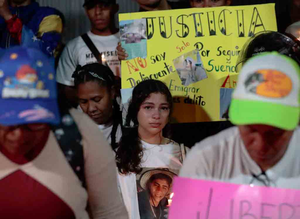 Familiares de los migrantes secuestrados, acompañados por la comunidad, se concentraron anoche en los alrededores de la embajada salvadoreña en Caracas, para participar en una vigilia en solidaridad con sus connacionales.