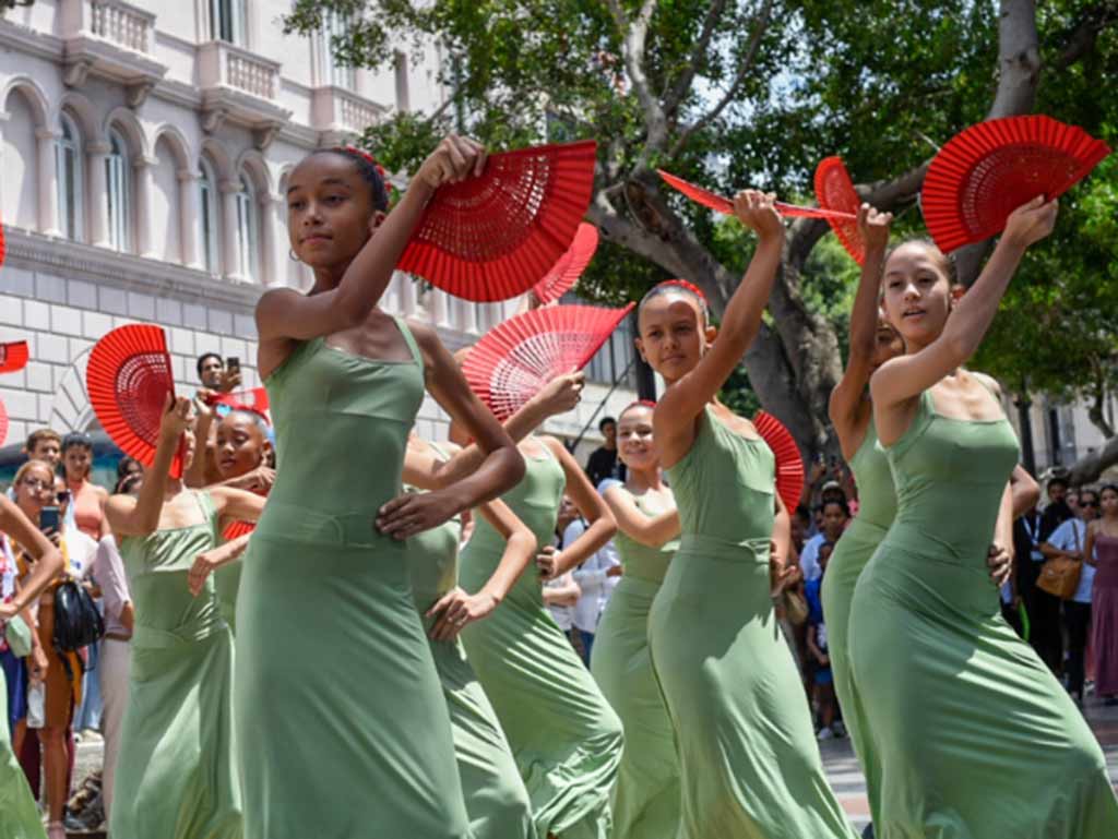 El periplo protagonizado por los jóvenes participantes con las banderas y trajes típicos de sus países recorrió desde el Gran Teatro de La Habana “Alicia Alonso” hasta la Escuela Nacional de Ballet “Fernando Alonso”, institución que acoge la cita.