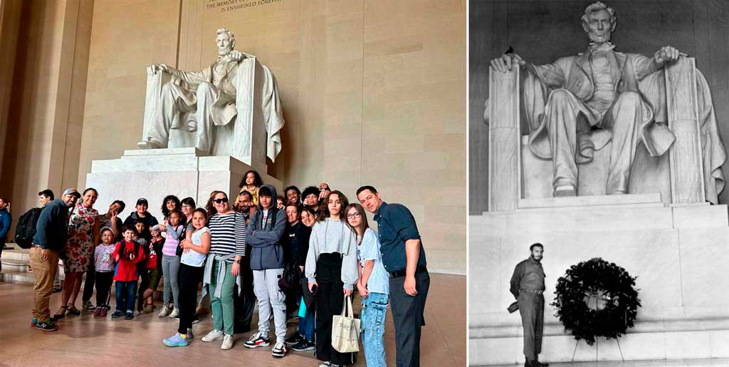 El recorrido de esta jornada incluyó una visita al Monumento a Lincoln y el Memorial de Jefferson, y el Capitolio, sede del Congreso, donde Fidel sostuvo en 1959 encuentros con senadores y con el entonces vicepresidente, Richard Nixon.