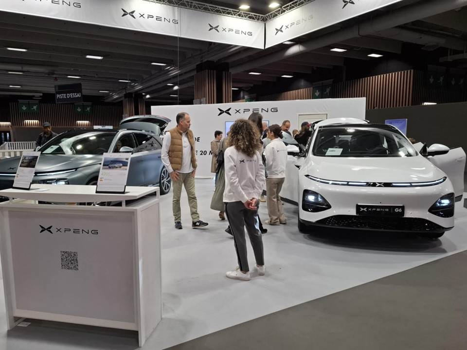 Los BYD y Xpeng expuestos en la Puerta de Versalles permiten al público acceder a su interior y recibir detalles de los especialistas presentes.
