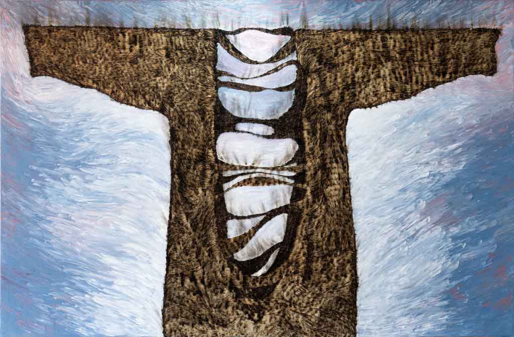 Tres de ellas (Descuero, Suspensión y Desuello) configuran una materia donde el óleo y el fósforo quemado se convierten en carne, gesto y memoria, al decir de la artista.