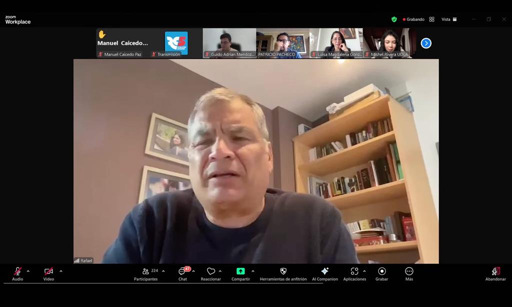 Durante un conversatorio virtual con periodistas, el exmandatario insistió en que “Daniel Noboa es un presidente ilegítimo” y que “la presidenta electa se llama Luisa González”, quien disputó la jefatura del Ejecutivo en representación de la Revolución Ciudadana (RC).