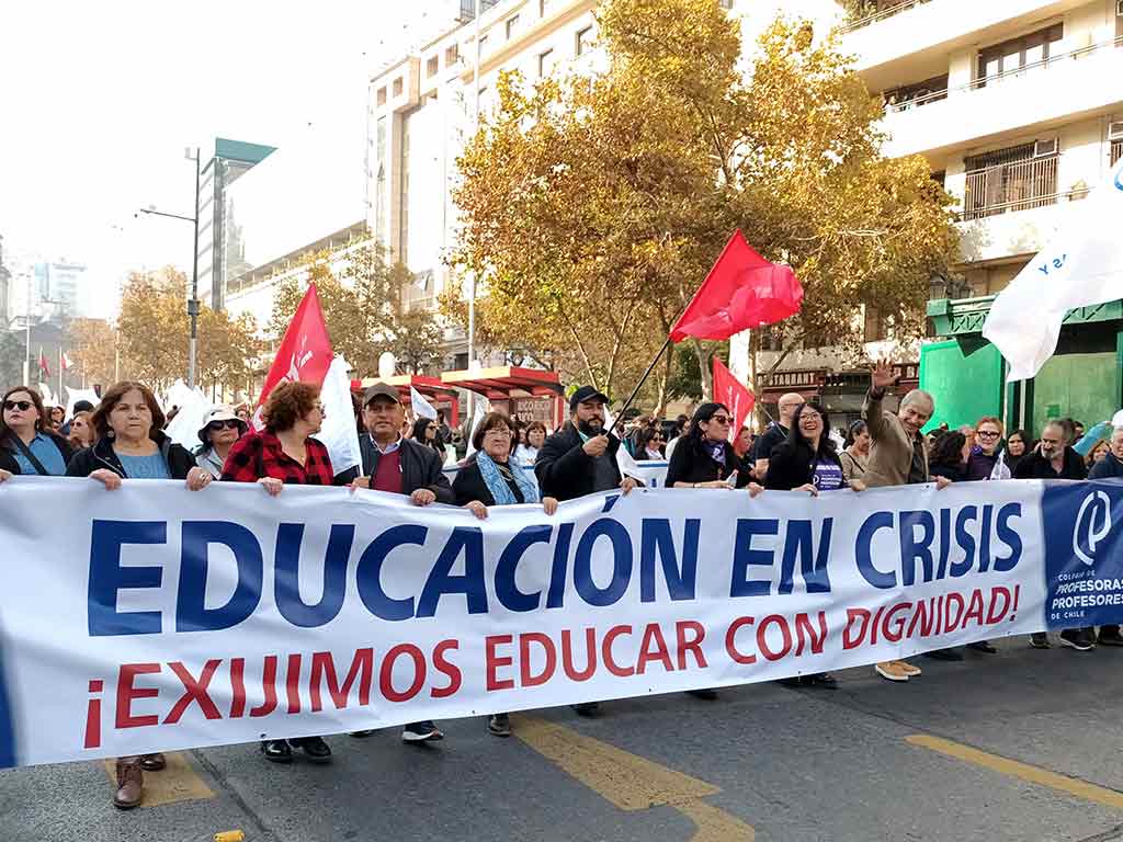 En esta capital, alrededor de 40 mil docentes marcharon por la avenida de La Alameda desde la Plaza de la Dignidad hasta la de Los Héroes y pasaron frente al Palacio de La Moneda, sede de la Presidencia.