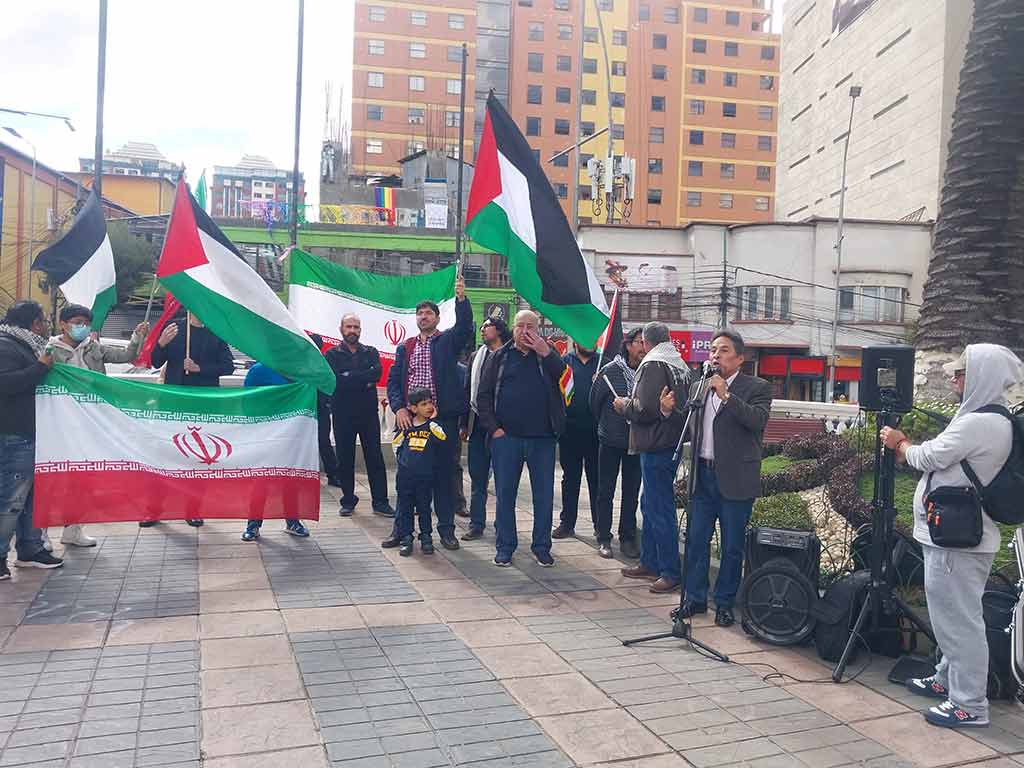 Al respecto sostuvo que esa es la causa de que representantes de diversas organizaciones sociales de los municipios de La Paz y El Alto se concentraran con banderas y carteles en la céntrica Plaza del Estudiante para celebrar la proeza de los combatientes iraníes, quienes vencieron a la pregonada Cúpula de Hierro de Israel, y demostraron «que se puede derrotar al sionismo y al imperialismo”.