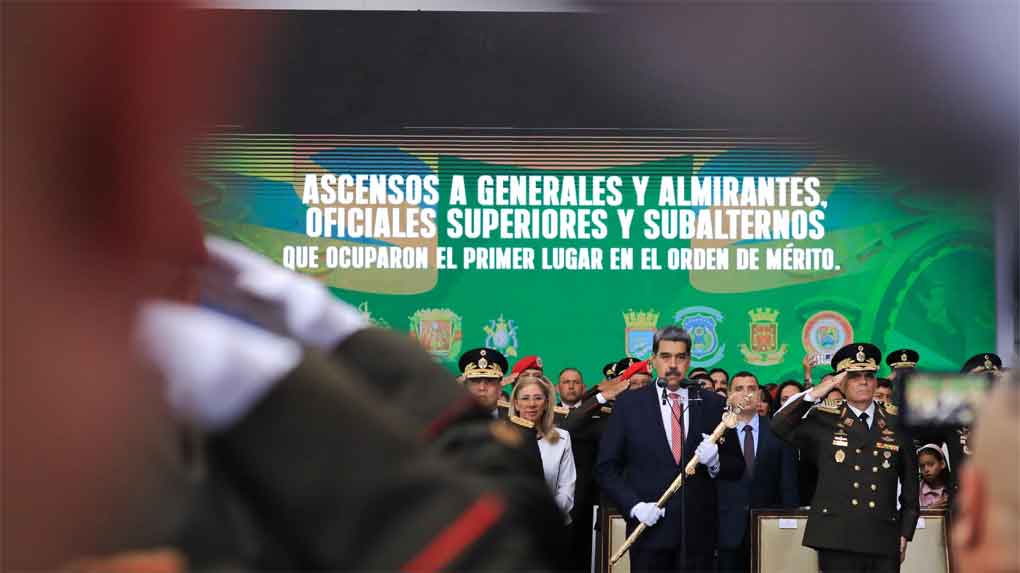 En el Patio de Honor de la Academia Militar, Maduro estuvo acompañado en la graduación por la vicepresidenta ejecutiva Delcy Rodríguez, la primera combatiente Cilia Flores, el ministro de Defensa Vladimir Padrino, el alto mando de la FANB y los Poderes del Estado.