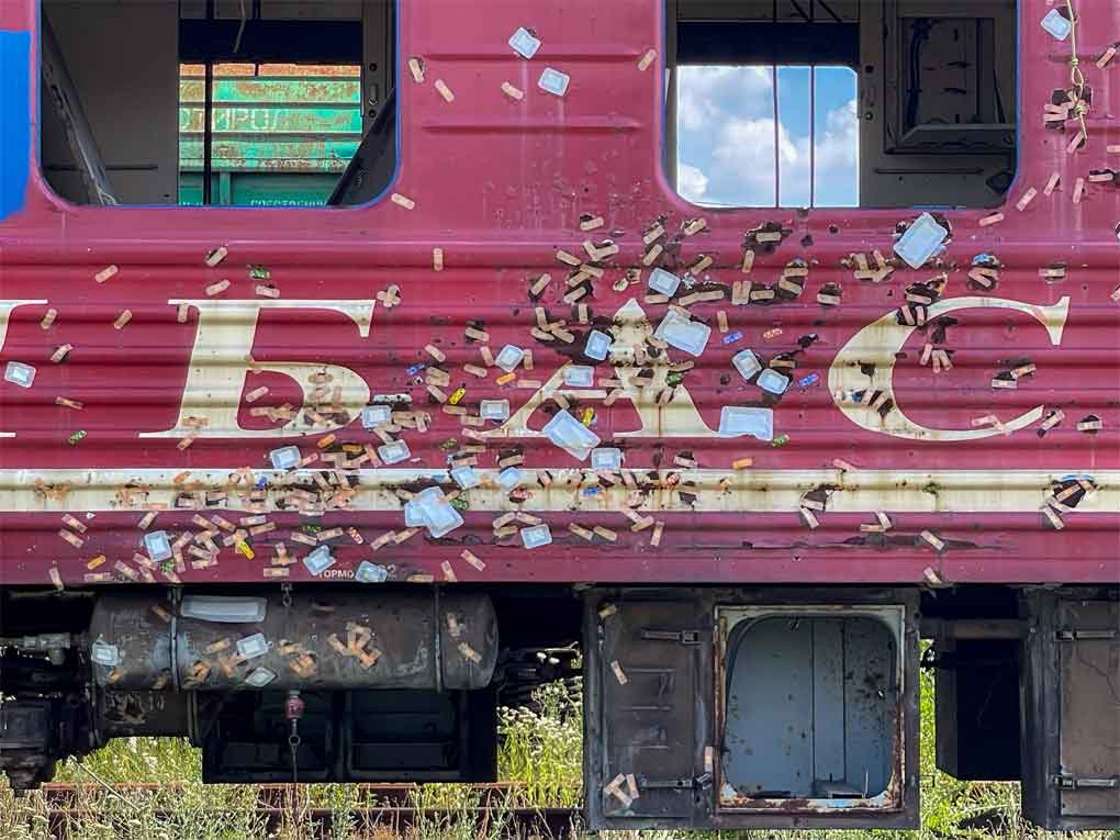 “La obra es un vagón de pasajeros, una metáfora de la vida humana como un movimiento a través del tiempo y el espacio. La superficie del vagón está cubierta de huellas de daños, que evocan el dolor, el trauma y las tragedias que una persona enfrenta a lo largo de su vida”, explicó el joven exponente en su canal de Telegram.